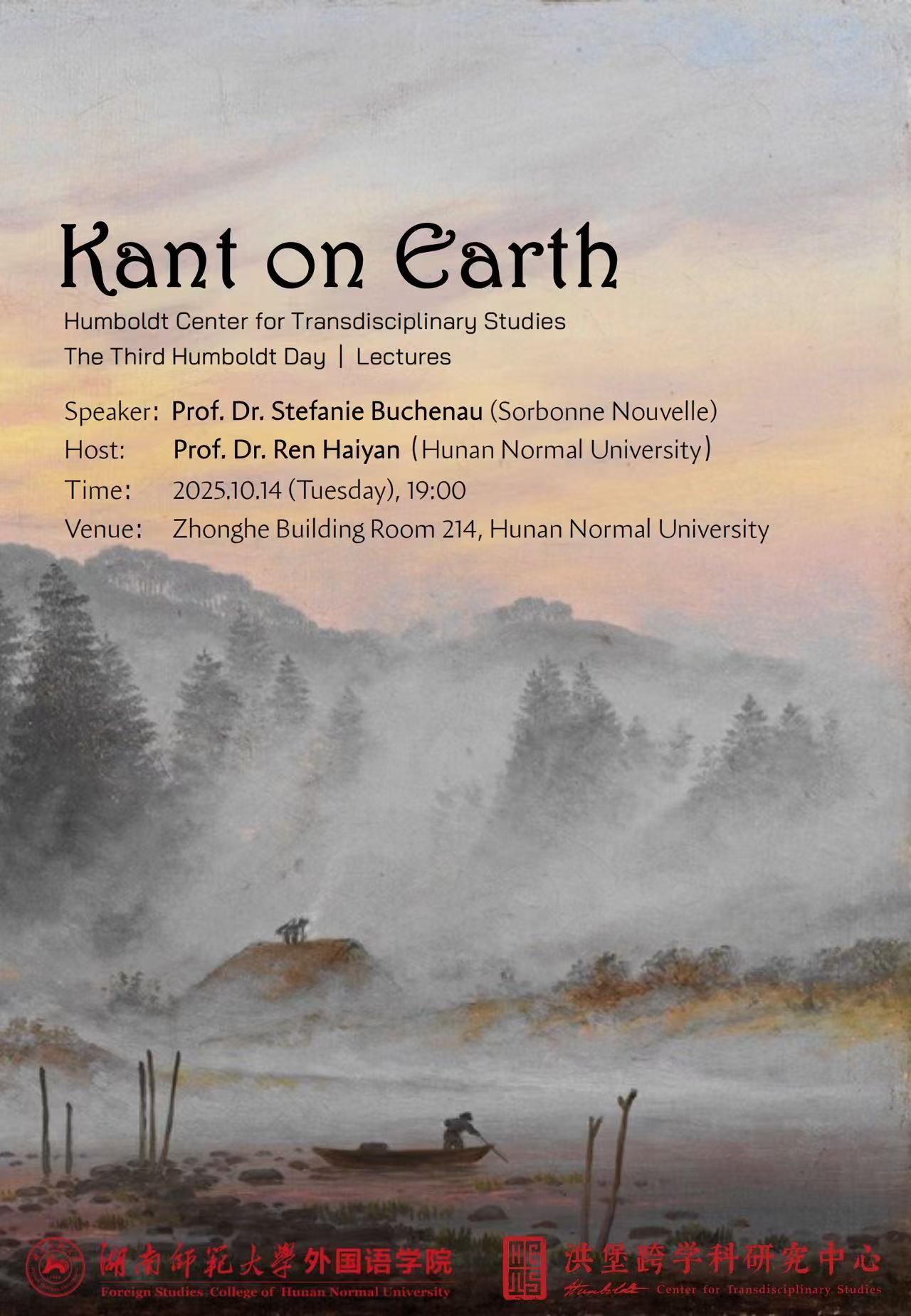 康德地理学思想研究新探:早期著作彰显哲学大家的地球科学情10月14日晚19点,湖南师范大学洪堡跨学科研究中心在中和楼219教室举办题为“Kant on Earth”的学术讲座。作为第三届“洪堡日”系列学术活动之一,本次讲座特邀法国新索邦大学德国思想史学者Stefanie Buchenau教授主讲,由外国语学院任海燕教授主持。讲座聚焦德国哲学家康德的早期地理学著作,深入探讨其与批判哲学体系之间深刻却常被忽视的内在关联,为在场师生呈现了...