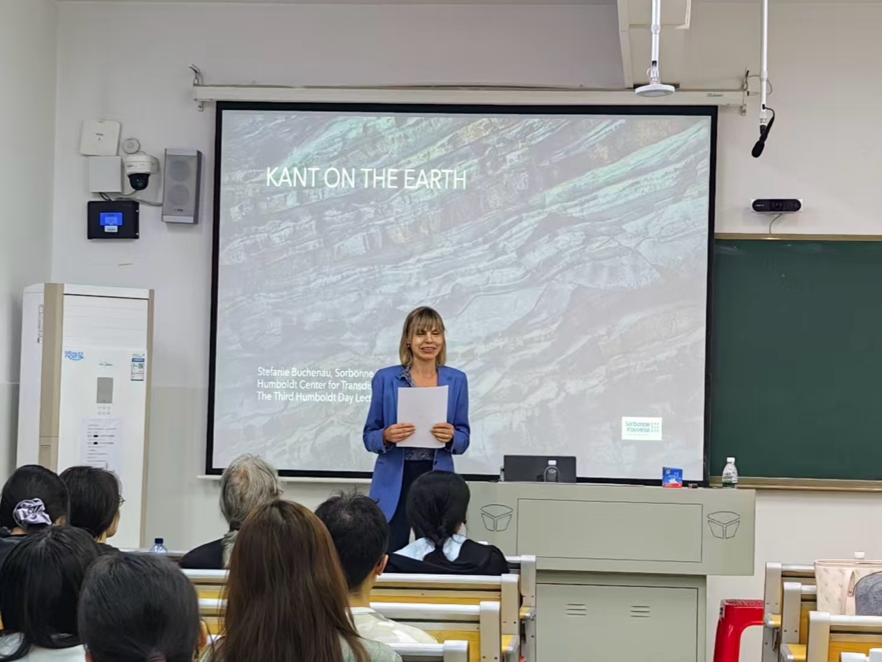 10月14日晚19点,湖南师范大学洪堡跨学科研究中心在中和楼219教室举办题为“Kant on Earth”的学术讲座。作为第三届“洪堡日”系列学术活动之一,本次讲座特邀法国新索邦大学德国思想史学者Stefanie Buchenau教授主讲,由外国语学院任海燕教授主持。讲座聚焦德国哲学家康德的早期地理学著作,深入探讨其与批判哲学体系之间深刻却常被忽视的内在关联,为在场师生呈现了一场兼具思想深度与启发意义的学术盛宴。
